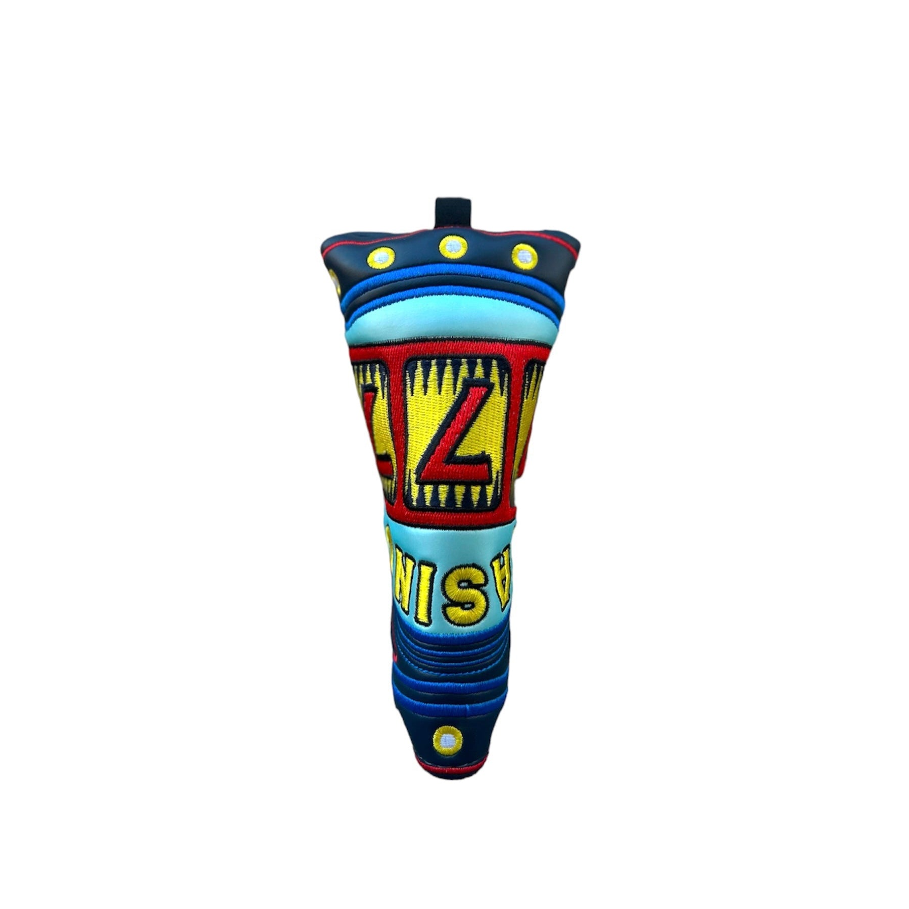 Introducing the Lucky 7's golf putter headcover, a sleek and stylish accessory designed to elevate your golf game. Crafted with precision and featuring a striking design, this headcover adds a touch of luck and flair to your putting arsenal.